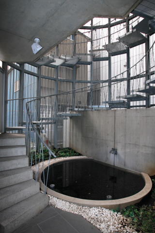 エントランス奥には、らせん階段があり、