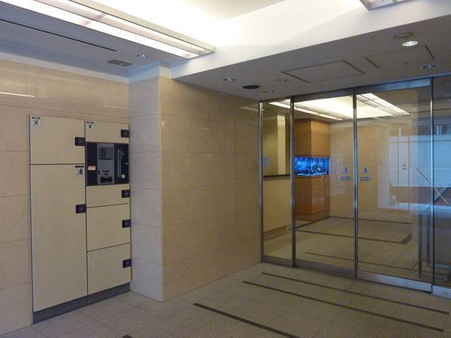 エントランスを入ると、まずはコンシェルジュがお出迎え。熱帯魚の泳ぐ水槽が高級感を演出しています。共用部にはラウンジ(& ミーティングルーム)があり、簡易的な接客はラウンジで、またきちんとした会議は予約して貸し会議室を借りることができます。