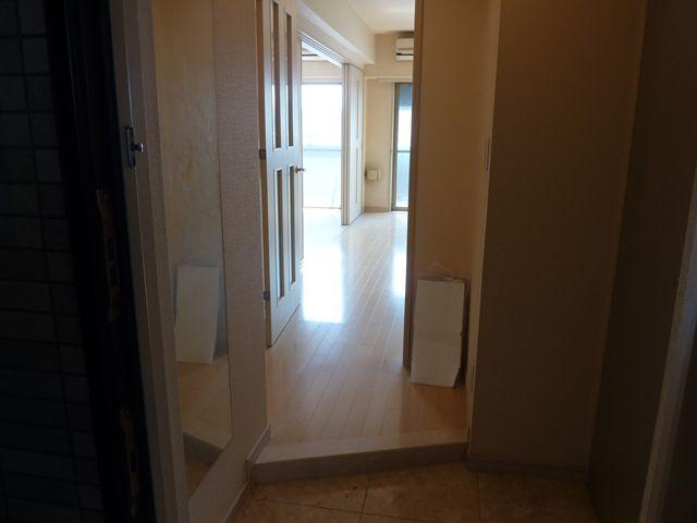 エントランス床はデザインタイル、小さなシャンデリアもあって、ヨーロッパ調な雰囲気があります。