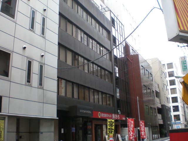 1968年竣工のオフィス、茶色の外壁の重厚感のある建物です。1階には飲食店が入店しています。新大橋通りから少し入ったところに立地しています。