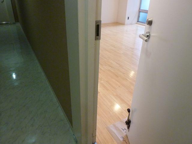 エントランスは白を基調としており、間接照明が柔らかな印象を与えます。