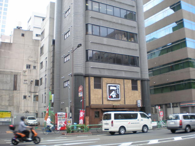 1992年竣工、グレーのタイル張りの外観の建物です。1階には飲食店があり目印になります。