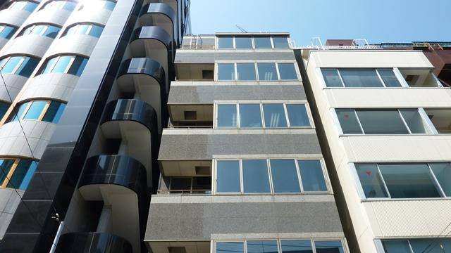 1995年竣工、グレーの石張りの外観のオフィスです。新耐震基準をクリアしています。