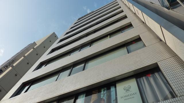 1984年竣工、白いタイル張りの外観の建物です。2022年エントランスや貸室をリノベーションし、おしゃれなオフィスへと生まれ変わりました。