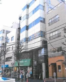 1993年竣工のオフィス、新耐震基準をクリアした建物です。黒とシルバーのパネル張りの外観で、1階は薬局になっています。
