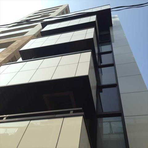 1987年竣工の白いパネル張りの外観のオフィスビル、清潔感があります。新耐震基準をクリアした建物です。