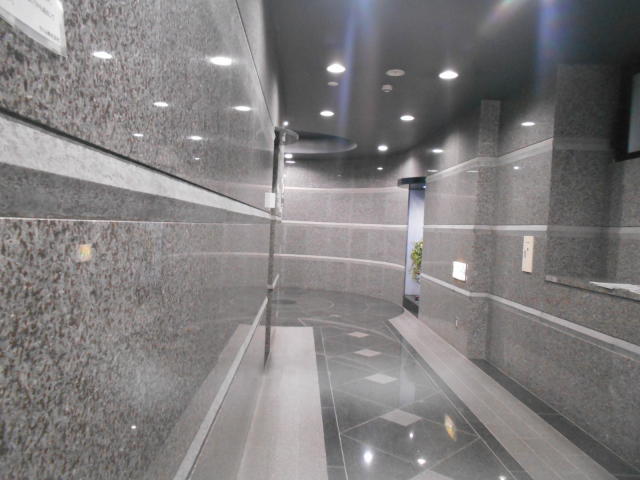 1991年竣工、グレーのタイル張りの外観、御影石を使用したエントランスホールは高級感が漂います。新耐震基準をクリアしています。