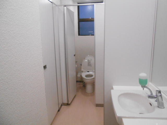 オフィスフロアには、EV1基、共用部に男女別トイレが設けられており、貸室内は効率よくレイアウトが可能です。エントランスの正面は駐車スペースになっています。