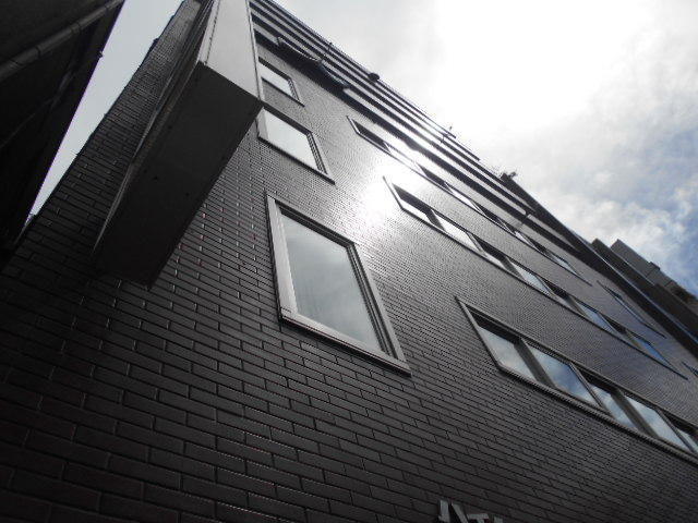 本郷通り沿い、レンガ色の外観が印象的な建物です