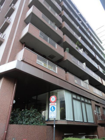1978年竣工、赤茶色のタイル張りの外観の重厚感のある建物です。