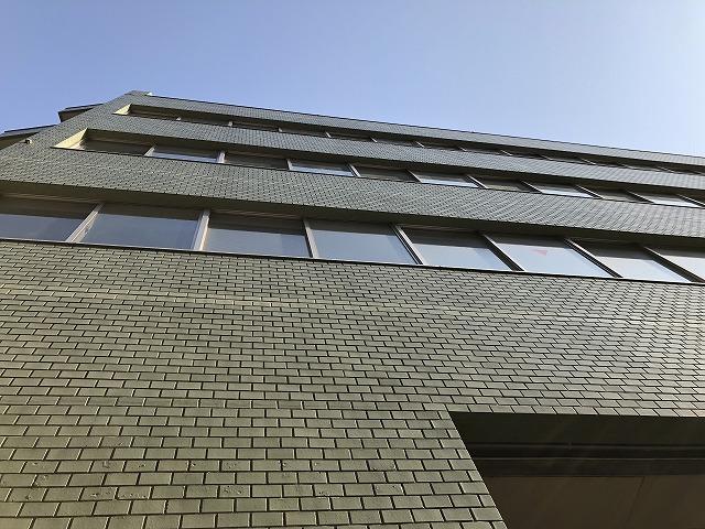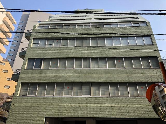1982年竣工、グリーンのタイル張りの外観の建物です。外観は2004年にリニューアル済みで築年数を感じさせません。