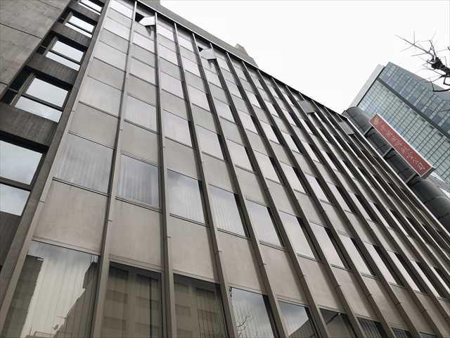 1971年竣工のオフィス、落ち着いたブラウンの外壁で窓の多い建物です。