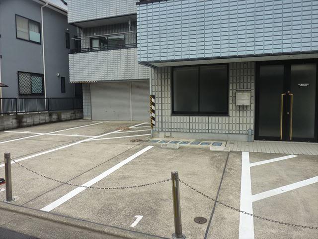 建物前に平置き駐車場があります。新耐震基準をクリアした建物です。