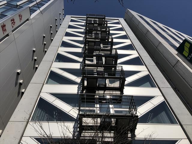 2004年リニューアル工事完了!窓に斜めに入ったシルバーのパネルが視認性を高めています。隣のビルには銀行があり来客様へのご案内もしやすいです。