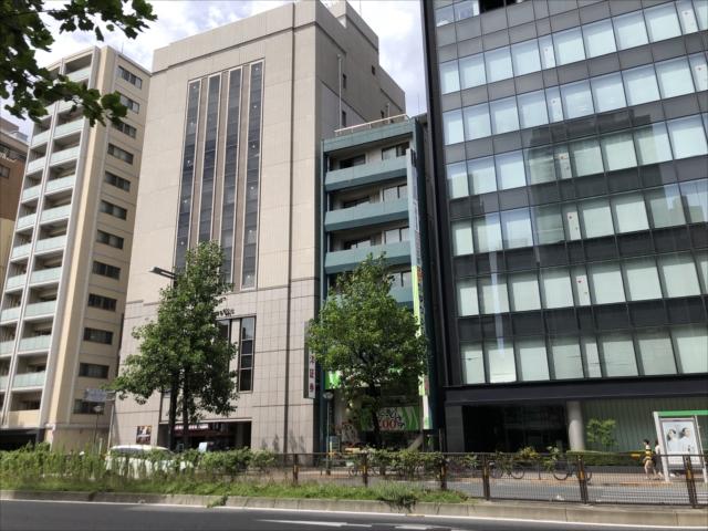 新宿通り沿いに面した建物で、エメラルドグリーンの外壁が視認性を高めています。1階にはペットショップが入店していてそちらも目印になりそうです。EVホールにトイレがあり、専有部は効率よくレイアウトできます。