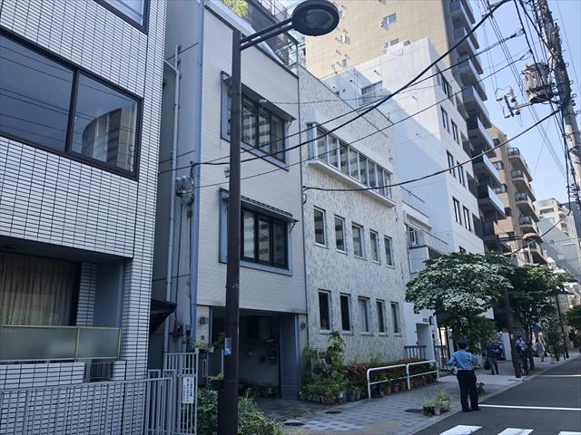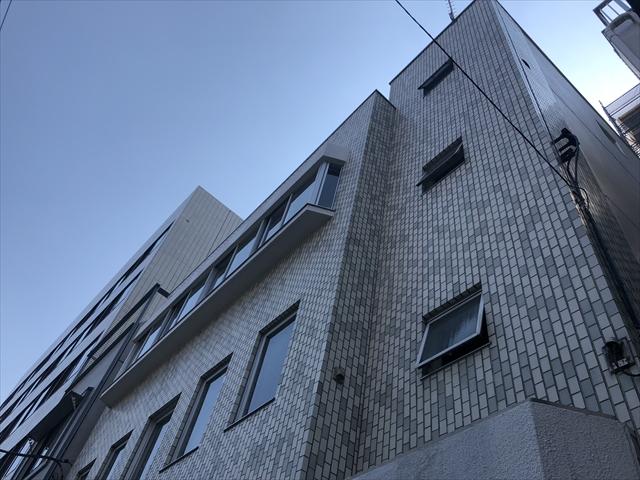 1974年竣工のオフィス、レトロな雰囲気のタイル張りの建物です。