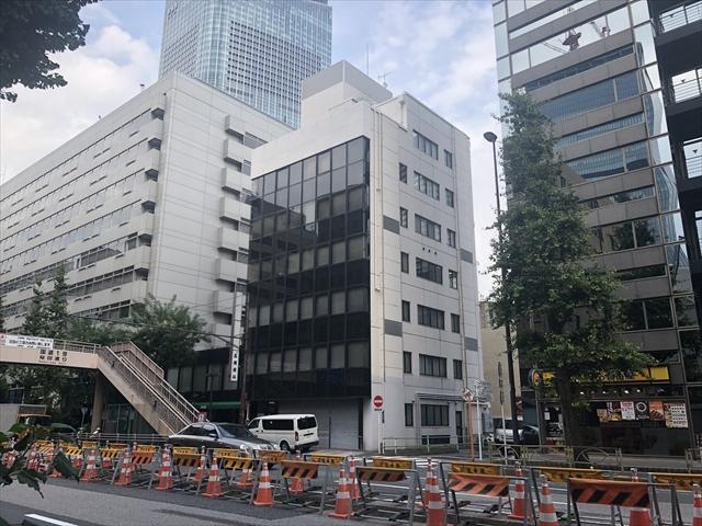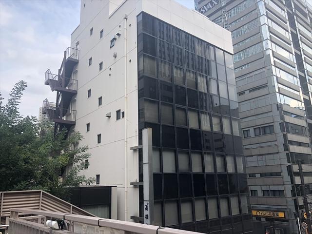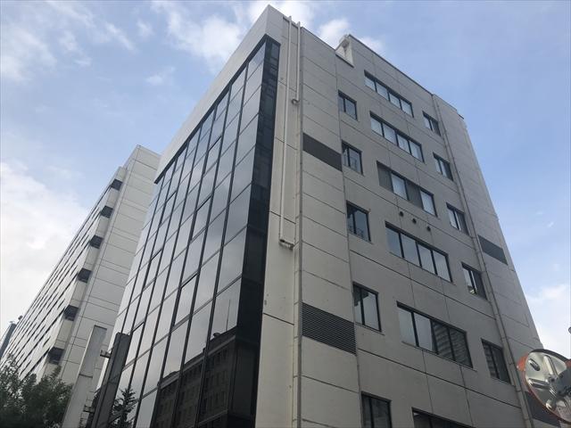 大石ビルは1977年竣工のオフィスビル、桜田通り沿いの角地に立地しているため視認性も良好です。白い外壁に茶色のガラスカーテンウォールの建物です。