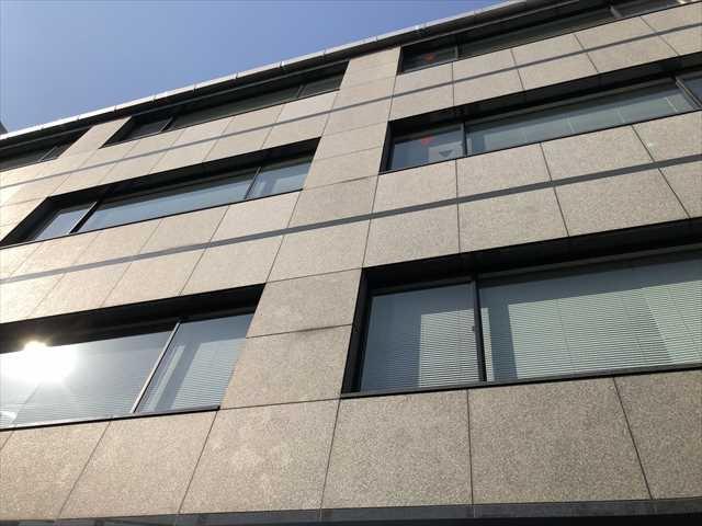 1989年竣工のオフィス、石張りの高級感あふれる外観の建物です。