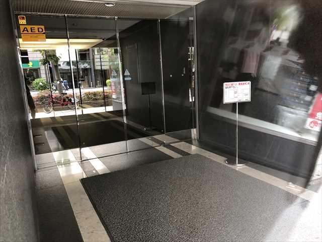 周辺はオフィス街、さわやかなブルーグレーのタイル張りの外観の建物です。1987年竣工で新耐震基準をクリアしています。建物にはエレベーター2基、タワーパーキング併設、男女別トイレ(隔階共有)、屋外喫煙所、フロア専用の給湯室があります。セキュリティは機械警備と有人管理併用で安心です。