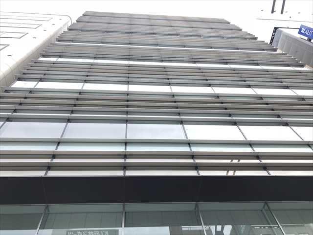 HF神田ビルディングは2008年竣工のオフィスビル、前面ガラス張りの美しい外観は視認性を高めています。