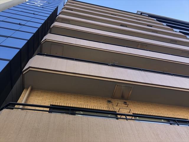 1980年竣工のオフィス、外観はベージュのタイル張りの建物です。バルコニーがありリフレッシュにも最適です。