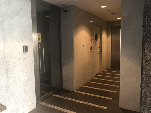 2001年竣工のオフィスビル、ダークトーンの石張りと大きな窓面が印象的な外観、新耐震基準をクリアした建物です。