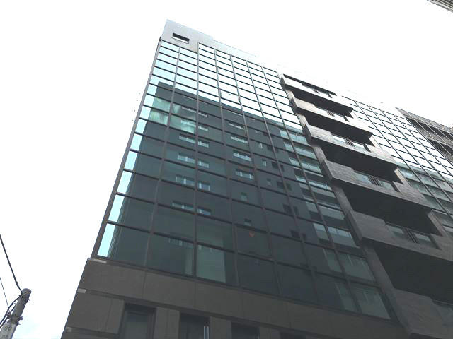 1992年竣工、ダークグレーを基調としたシックな外観、ガラスウォールのオフィスビル。新耐震基準をクリアした建物です。