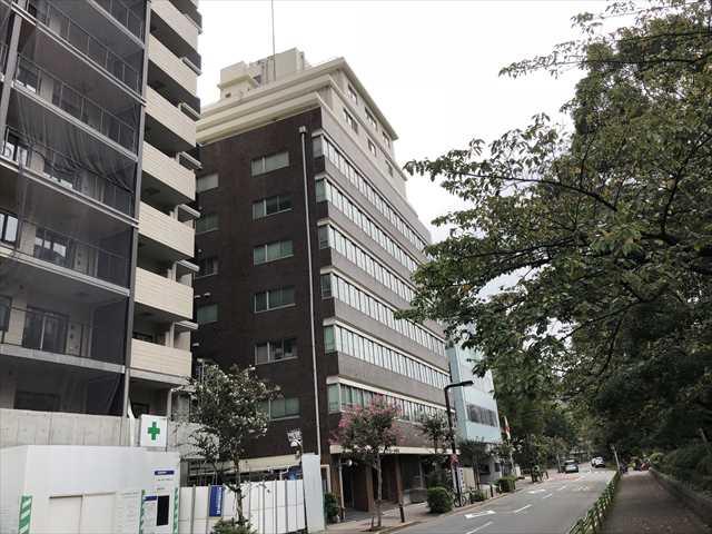 ”掖済会ビル”は1971年竣工の歴史のあるオフィスビル、茶色のタイル張りの建物でどっしりとした外観の建物です。