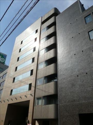 1987年竣工のオフィスビル、グレーの外観、丸みを帯びたバルコニーが特徴的なペンシルビルです。新耐震基準をクリアした建物です。