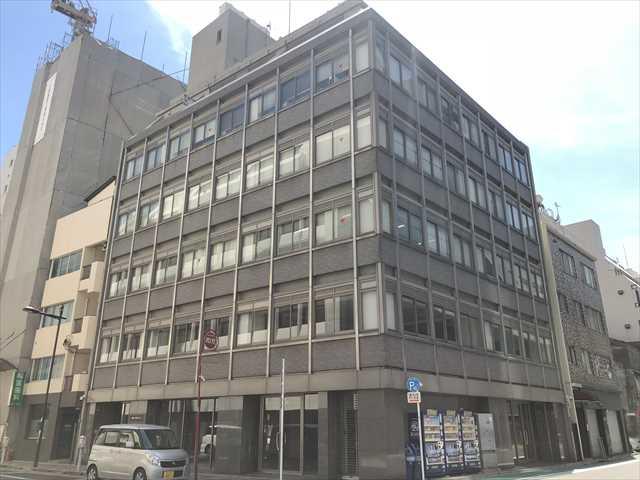 ”タカラ第3ビル”は1967年竣工の歴史のあるオフィスビル。角地に立地していて、グレーのタイル張りの落ち着いた外観の建物です。