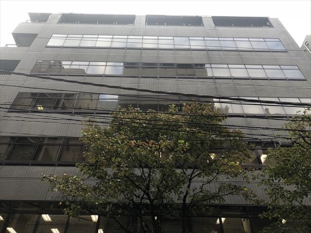 1993年竣工、グレーの石張りの外観のオフィスビルです。新耐震基準に適合しています。