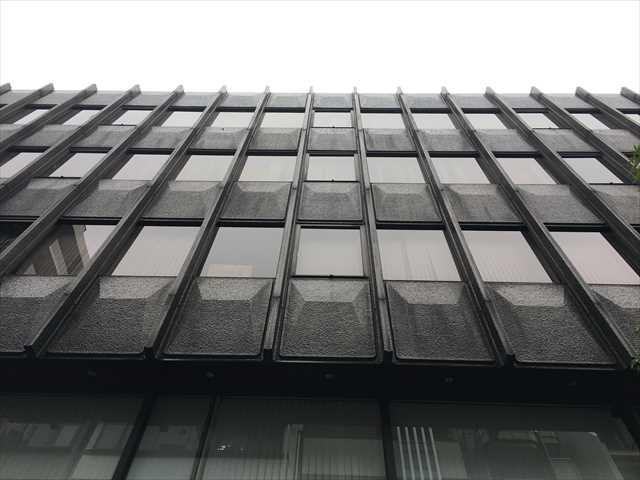 1977年竣工のオフィスビル、茶色の外壁と大きな窓が印象的な建物です。