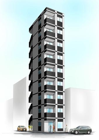 2019年竣工、白いタイル張りに黒タイルのアクセントを付けた外観の建物。独立開業の方にお勧めなスモールサイズのオフィス。