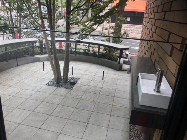 エントランス横に緑に囲まれたリフレッシュスペースを配置