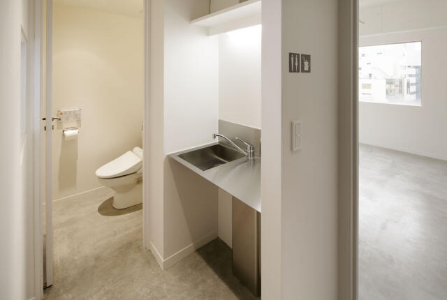 また、内装はかっちりとしたオフィスというよりは、床はコンクリートむき出し、天井も抜いてあって、デザイン関係の事務所という雰囲気。デザイナーズな内装が好きな方には最適です。