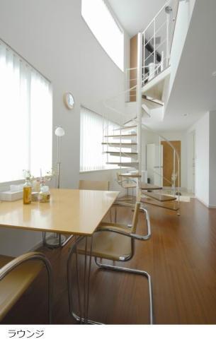 室内はスタイリッシュな螺旋階段、吹き抜け壁面、
