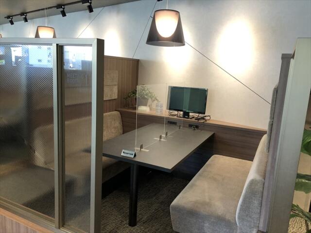 個室とラウンジとを使い分けて仕事をすることができます。
