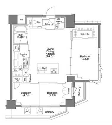 | 面積:67.89m² | 所在階:地上6階 |